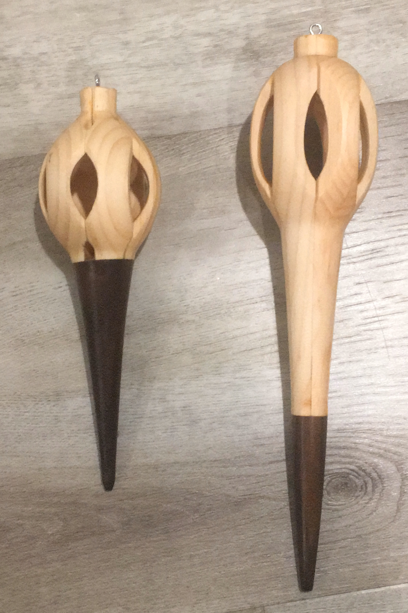 Featuring a Fir wood upper made from reclaimed lumber and a black walnut lower, each ornament is an excellent statement piece
